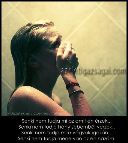 Este van te a szobádban ülsz,a számítógép előtt.Olvasgatsz Facebook-ozol,zenét hallgatsz,beszélgetsz a barátaiddal/ismerőseiddel.Aztán egyszer csak,a lejátszódba elindul egy dal..Amit egy bizonyos valaki szeretetett meg veled.Aztán miközben ezzel-azzal társalogsz elindul benned valami.Egy emlék sorozat ,és a kedved annyira mínuszba süllyedt,hogy könnyek között pötyögőd be valakinek a szmájlit..Sírsz.Emlékezel.Fáj.Hiányzik.Agyalni kezdesz vajon,mit rontottál el ennyire.Nem vagy elég jó egy kapcsolathoz?Neked az a sorsod hogy mindig,mindenkibe csak csalódnod kelljen?Rossznak érzed magad és hibásnak.Mindenért,de főleg,azért,amiért most egyedül vagy,és gyengének érzed magad.Lassan inkább elköszönsz mindenkitől,mert alig látsz könnyeidtől.Lefekszel "aludni".Persze,ha sikerülne,de egyre csak emlékezel,mennyire boldog voltál.Most pedig azt se tudod gondol-e rád.Aztán ez a folyamat zajlik benned,hosszú,végtelennek tűnő órákon keresztül,mire már ki se bírod nyitni a szemed a könnyektől,és álomba sírod magad...